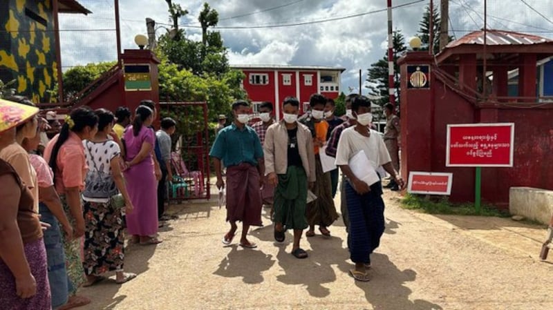 Prisoners released from Shan state’s Lashio Prison on August 1, 2023. (RFA)