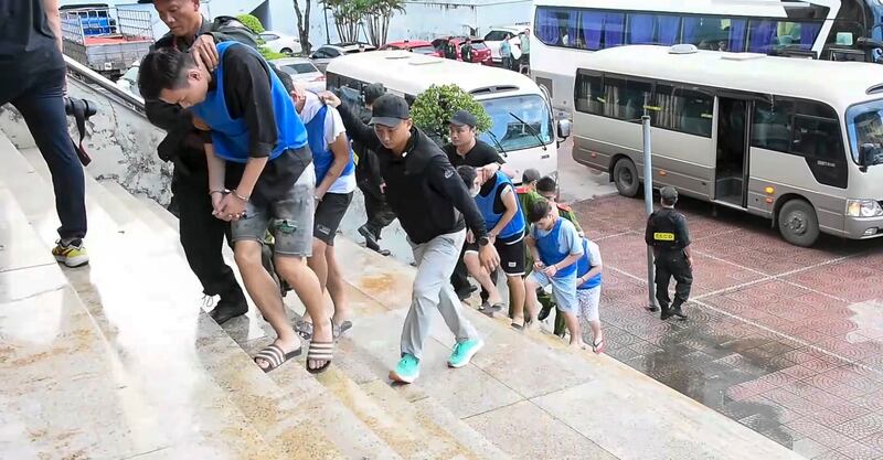 Opinion-laos-scam-trafficking-04 Police arrest scammers in Laos’ Golden Triangle Special Economic Zone, Aug. 15, 2024. (Laos Anti-Trafficking Department via Facebook)