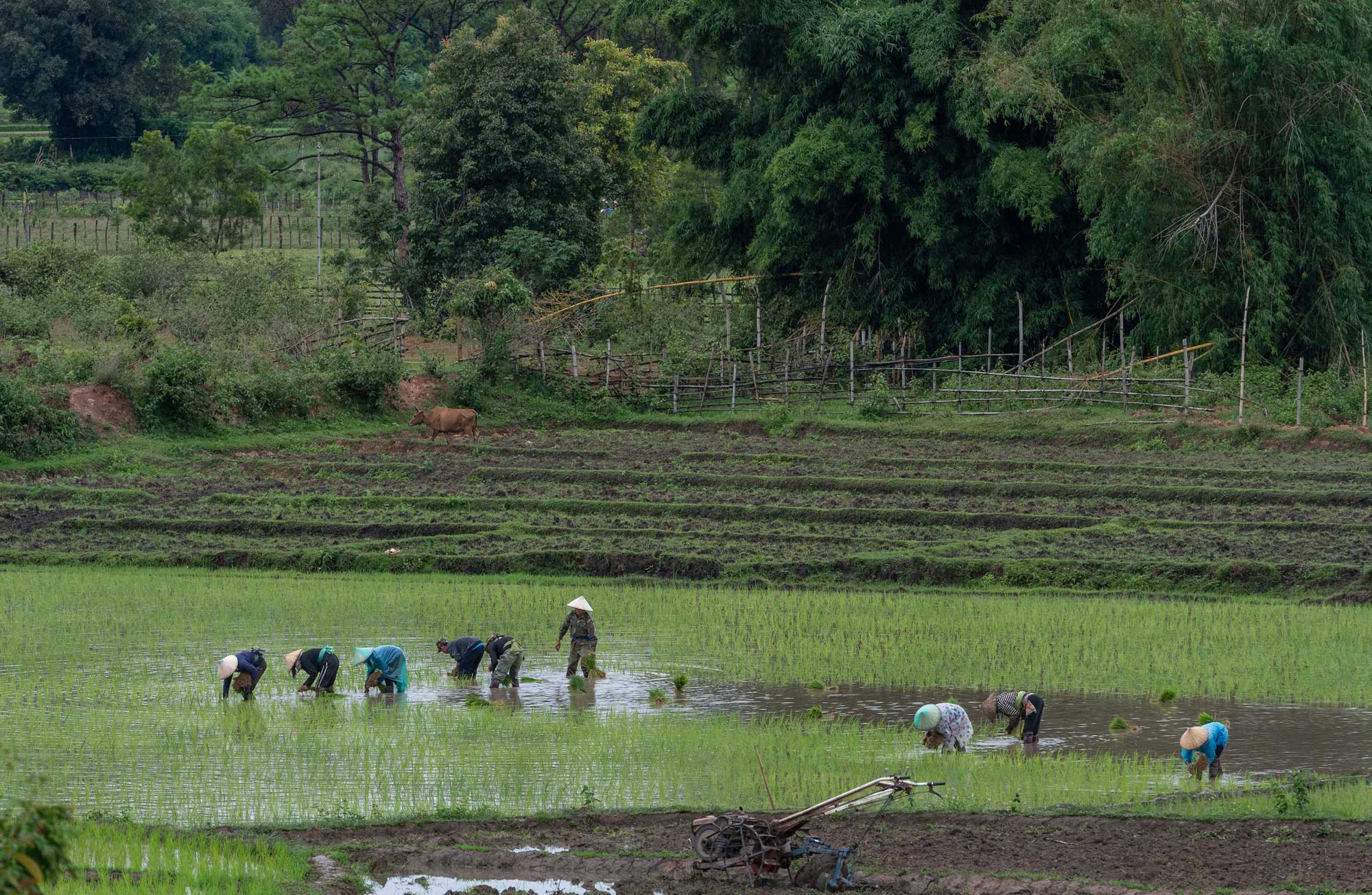 Nông dân làm việc trên cánh đồng lúa ở Xiêng Khoảng, Lào, ngày 27/6/2023. Nguồn ảnh: Tran Viet Duc/RFA